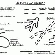Spuren auf der Fahrbahn, an und im Fahrzeug sowie an Personen