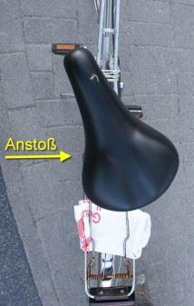 Bei einer Pkw-Fahrrad-Kollision (Fahrrad wird seitlich vom Frontbereich des Pkw erfasst) kann man in der Regel folgende Beobachtung machen: der Fahrradsattel dreht sich kollisionsbedingt, d. h. die Sattelspitze weist nach der Kollision häufig in die Richtung, aus der der Pkw kam. Wichtig ist diese Feststellung, wenn die Fahrtrichtungen eines der beteiligten Fahrzeuge nicht bekannt sein sollte. Die Satteldrehung erfolgt durch den Umstand, dass das Fahrrad durch die Kollision unter dem Fahrradaufsassen seitlich weggestoßen wird, während der Aufsasse zunächst seine Eigengeschwindigkeit beibehält und die Sattelspitze durch den Oberschenkel des Fahrradfahrers weggedrückt wird.