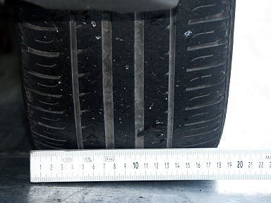 Anschließend wird die Breite der Reifenlauffläche vermessen und mit der Breite der Brems - / Blockierspur verglichen.