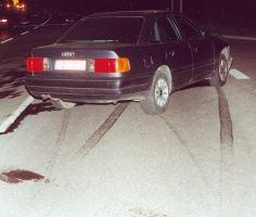 die Brems- / Blockierspuren gehen in Schleuder- und Radierspuren über