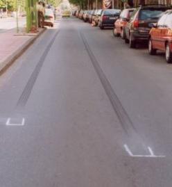 Brems- und Blockierspuren ermöglichen Aussagen über Geschwindigkeitsabbau, Bremsausgangsgeschwindigkeit, Bewegungsrichtung, fahrzeug und reifenspezifische Daten.