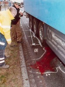 Biologische Spuren auf der Fahrbahn geben Aufschluss über den Unfallverlauf (z.B. bei Auffinden von Federn, Tierhaaren und Pflanzenteilen), die Abwurfweite und Aufschlagstelle von unfallbeteiligten Personen (bei Auffinden von Haaren und Gewebe) und die Endlage dieser Personen (größere Lachen von Körperflüssigkeiten deuten auf längere Liegezeit hin). Außerdem lassen Blutspritzer die Antragsrichtung erkennen und Bluttropfen geben Auskünfte über den Weg von der unfallbedingten Endlage bis zum Ort, wo die ärztliche Versorgung stattgefunden hat.