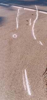 Des Weiteren können Kratzspuren auch von mitgeschliffenen Gegenständen (z.B. überfahrende Hindernisse wie Verkehrszeichen, verlorene Ladungsteile, u. ä.) stammen.