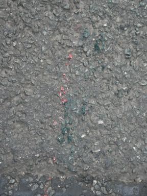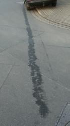 Kotflügelschmutz fällt meistens nicht an der Kollisionsstelle als Erdanhäufung aus dem Radkasten auf die Fahrbahn, sondern erst nach dem Stillstand des Fahrzeuges. Deshalb markieren die Erdansammlungen oft den Endstand des Fahrzeuges. Das Fahrzeug auf dem Foto ist demnach nach dem Stillstand aus seinem Endstand entfernt und zur Seite gefahren worden.