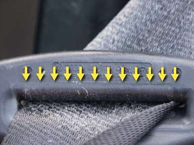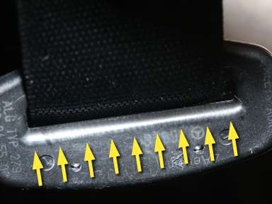 Zur Klärung der Frage, ob eine Person angeschnallt war, sollte man sich die Gurtzunge näher ansehen. Durch die plötzliche Reibung mit Reibungshitze des Gurtes über die Umlenklasche der Gurtzunge entstehen hier durch die Struktur des Gurtes deutliche Spuren in Form von streifenförmigen Riefen und Abriebspuren, eventuell mit leichten Verschmelzungen, Dehnungen und Aufrauhung des Gurtbandes.